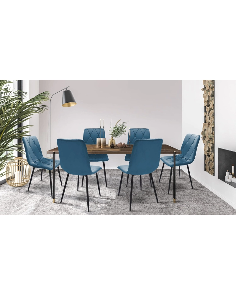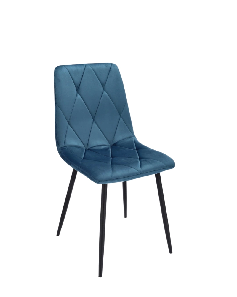 Scaunul este tapițat cu catifea și matlasat pe interior cu cusături regulate în formă de diamant. Picioarele înalte și subțiri de culoare neagră arată foarte chic și garantează o stabilitate perfectă.