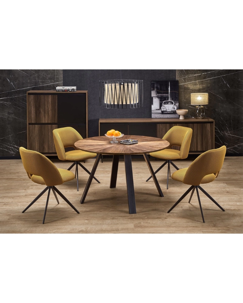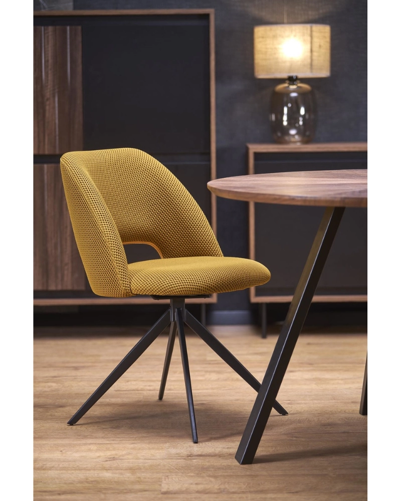 Scaun rotativ K546 Halmar - pentru interioarele moderne. Modelul atrage atenția cu performanța sa elegantă și de înaltă calitate. Designul scaunului constă dintr-un cadru din oțel negru, un scaun moale și un spătar rotunjit tapițat cu o țesătură cu membrană de culoare muștar. O caracteristică specială a scaunului K546 Halmar este capacitatea de a roti scaunul la 180 de grade și de a-l readuce în poziția inițială.