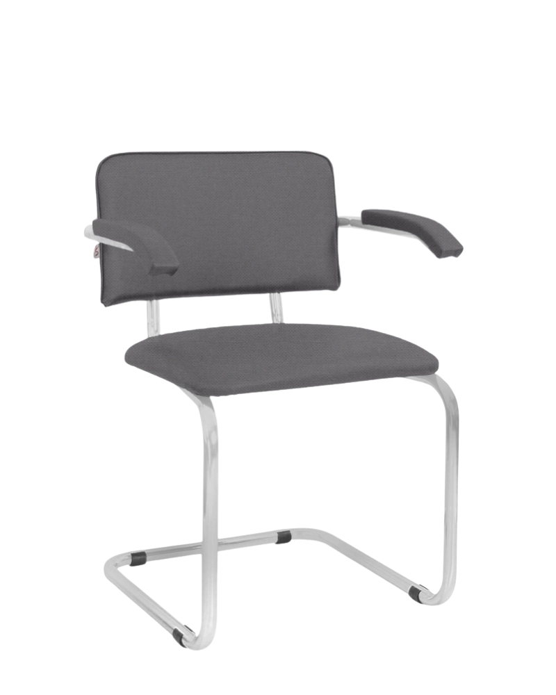 Scaunul de birou are sezut, spatar si cotiere captusite cu ecopiele. La baza modelului se află un cadru metalic sudat, care oferă rezistență structurii.