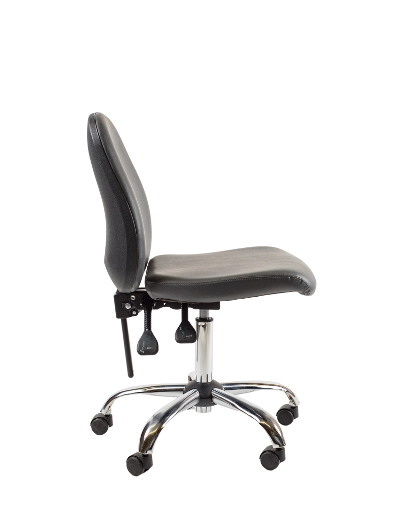 Fotoliul Medico GTS din piele sintetică de înaltă calitate și montat pe o bază cromată, ceea ce îi va permite să fie folosit în laboratoare și alte instituții medicale unde mobilierul trebuie șters și spălat.