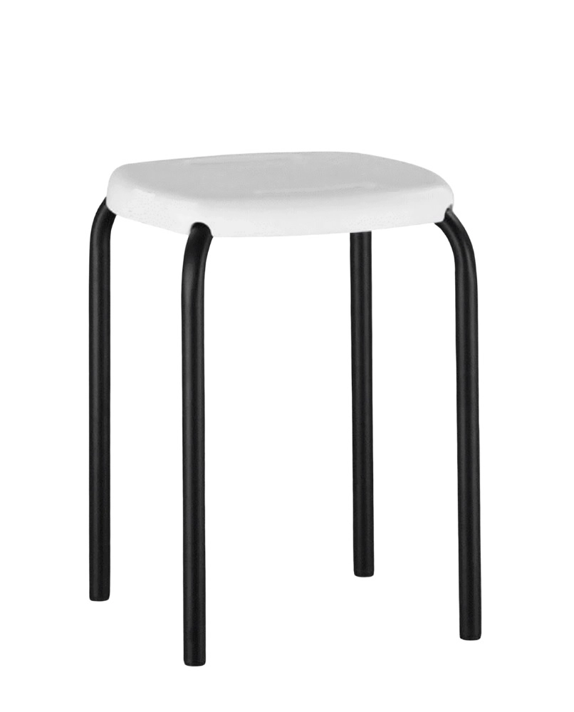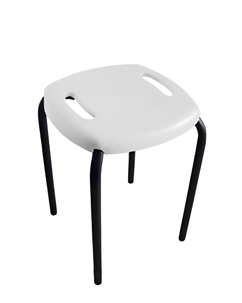 Scaun compact pe un cadru negru. Șezutul din plastic într-o gamă largă de culori este realizat cu fante pentru a fi transportat cu ușurință. Poate fi stivuit pentru o depozitare ușoară.