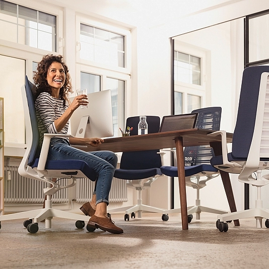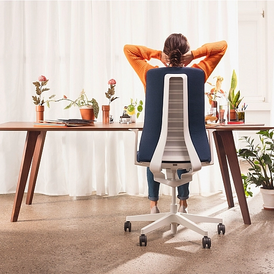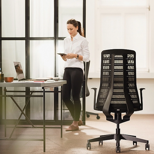 Инновационные материалы активно подстраиваются под пользователя кресла: под его вес, длину, пропорции и движения. Это стало возможным благодаря инновационной смеси материала полиамида и стекловолокна. Interstuhl Pure PU213 имеет дышащую прозрачную спинку. Благодаря постоянной вентиляции спина остается прохладной. Доступен в различных цветах ткани. Каркас на выбор черный или белый.
