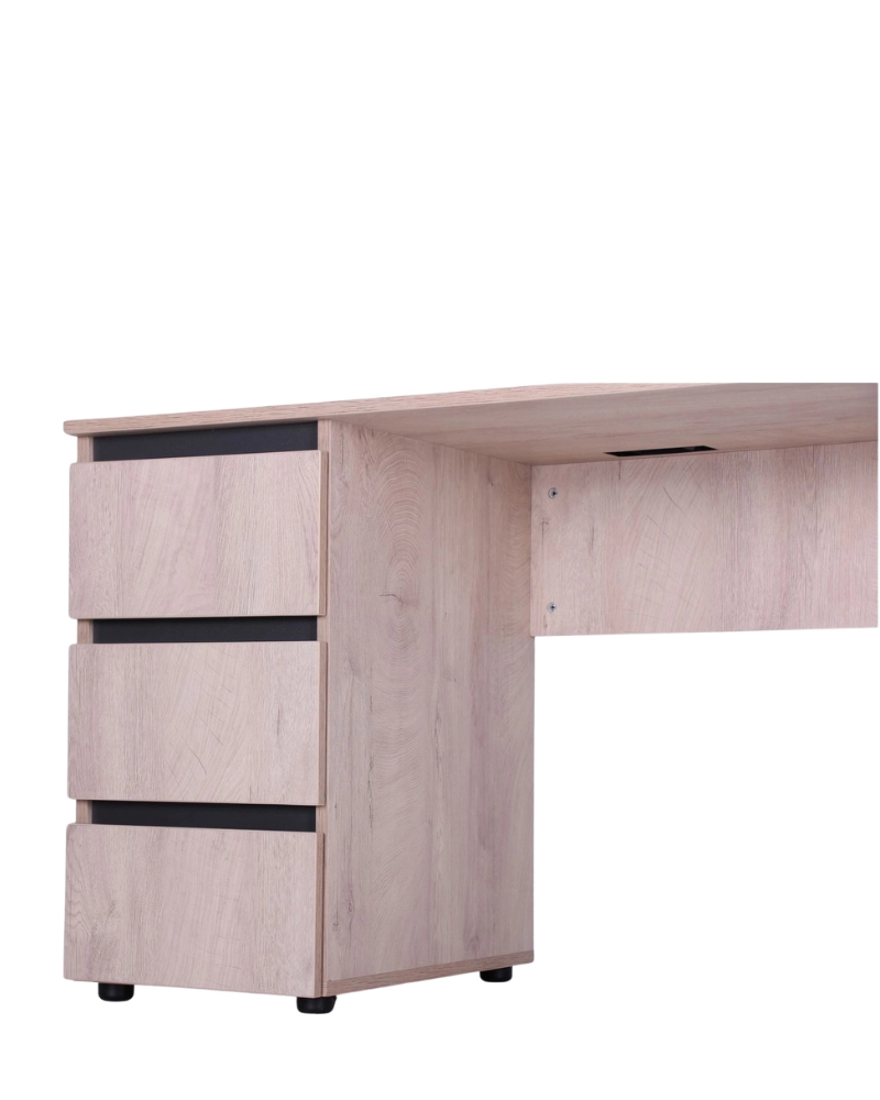 Бесплатно при заказе от 1000 леев.Письменный стол на металлических опорах. ДСП столешница размером 1380х600 мм. Встроенная тумба на 3 ящика с левой стороны. Цвет металла - черный графит.