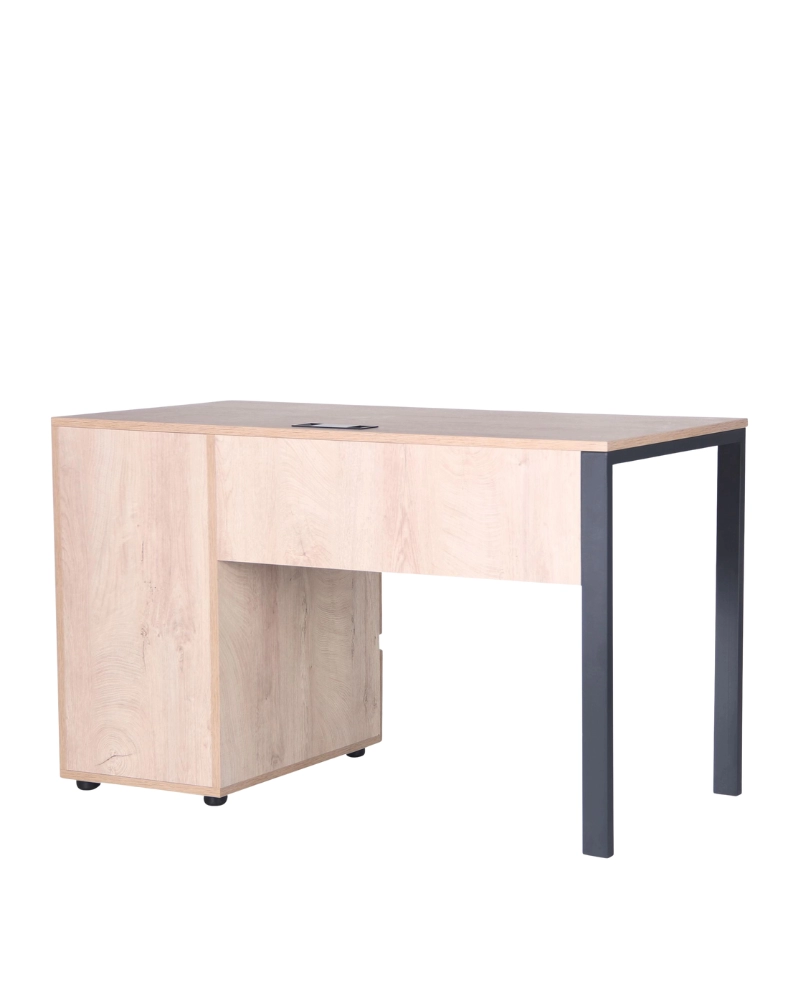 Бесплатно при заказе от 1000 леев.Письменный стол на металлических опорах. ДСП столешница размером 1200х600 мм. Встроенная тумба на 3 ящика с правой стороны. Цвет металла - черный графит.
