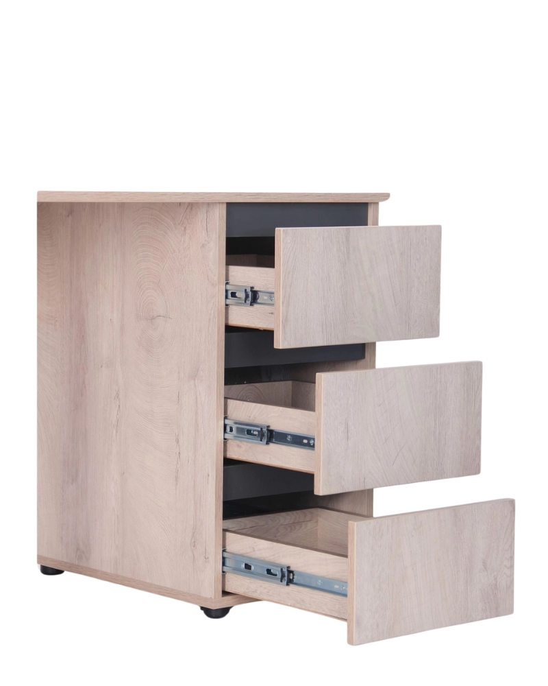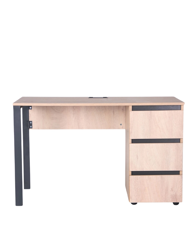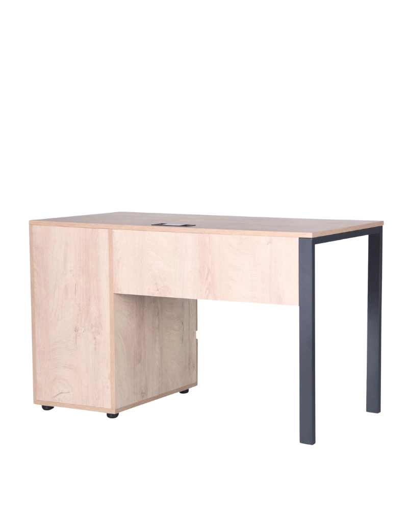 Бесплатно при заказе от 1000 леев.Письменный стол на металлических опорах. ДСП столешница размером 1380х600 мм. Встроенная тумба на 3 ящика с правой стороны. Цвет металла - черный графит.