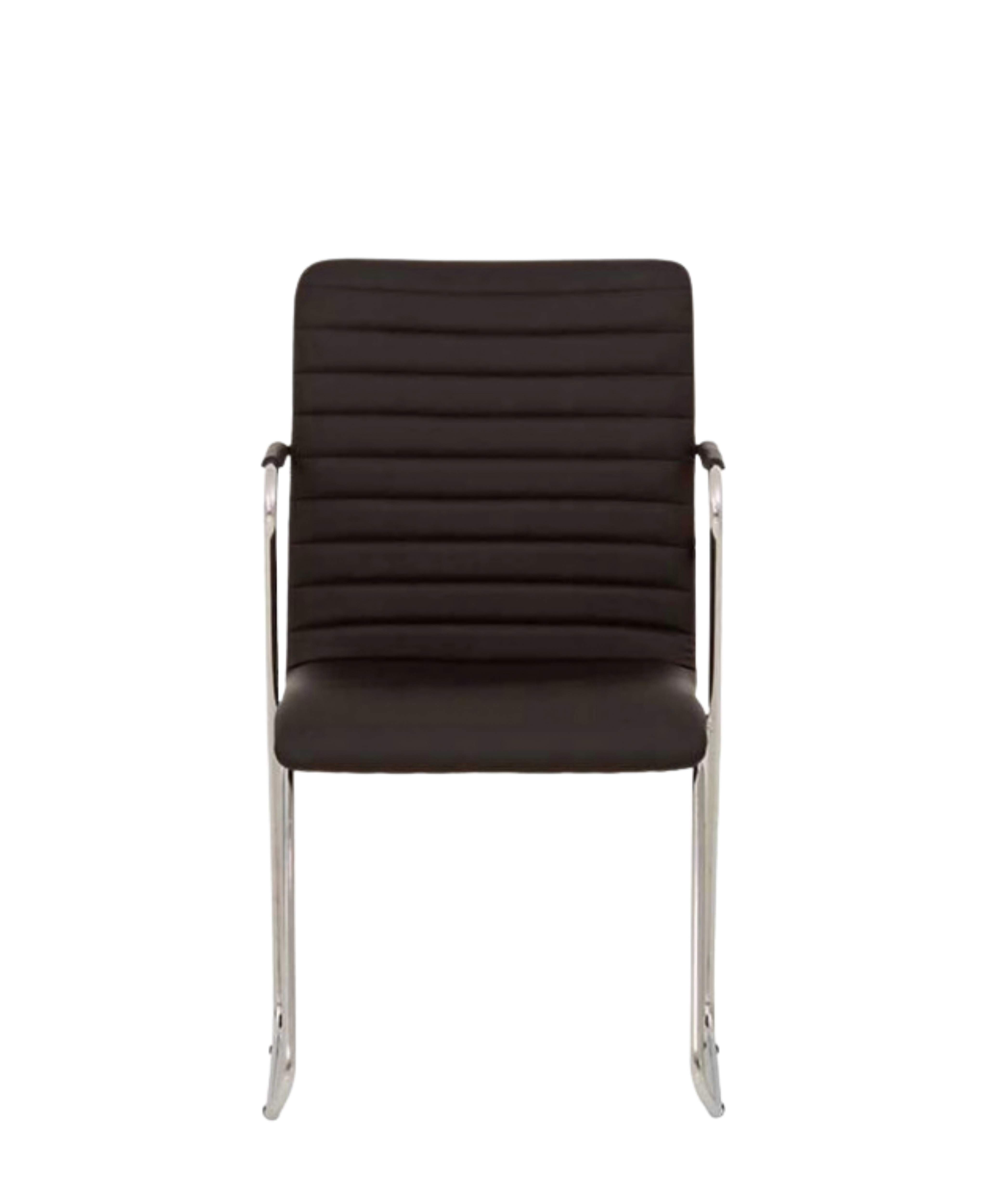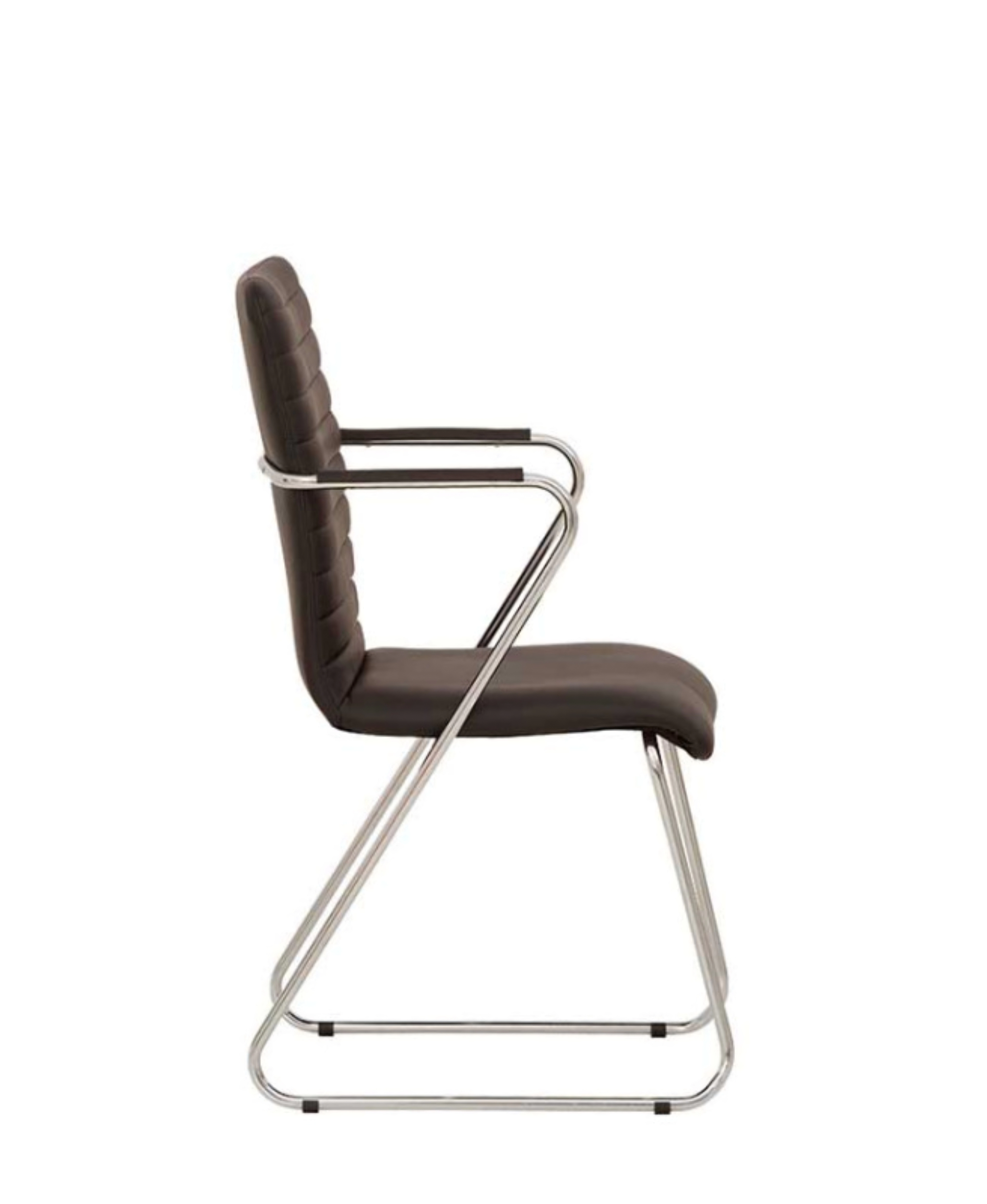 Конференц-стул на хромированной раме с подлокотниками, накладки на подлокотниках из экокожи. Сиденье выполнено из экокожи.