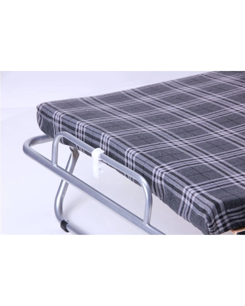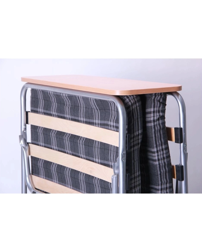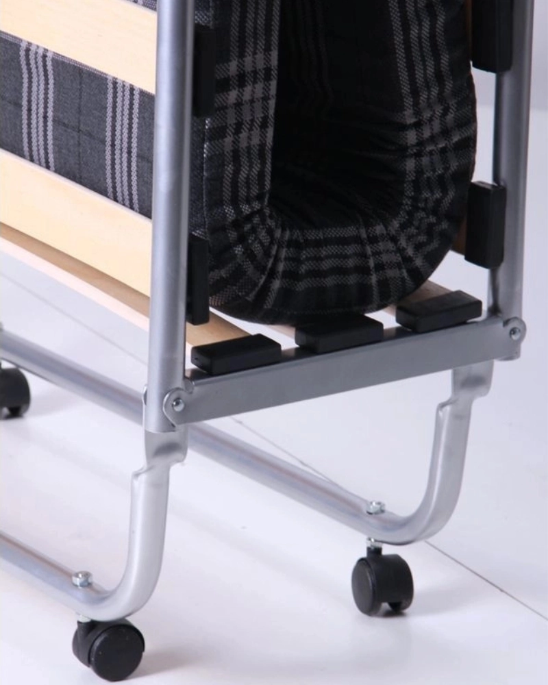 Patul cu saltea anatomică vă permite să vă amenajați un loc de odihnă în aer liber, în grădină sau la cabană. Salteaua este fabricată din materiale ecologice hipoalergenice. Lamelele elastice din lemn de fag sunt un înlocuitor complet pentru pat. Pentru confortul utilizării, în capul patului a fost adăugată o despărțitoare care, în stare asamblată, poate fi folosită ca raft. Picioarele sunt prevăzute cu role pentru a facilita deplasarea. Cadrul metalic este vopsit în culoarea argintiu.