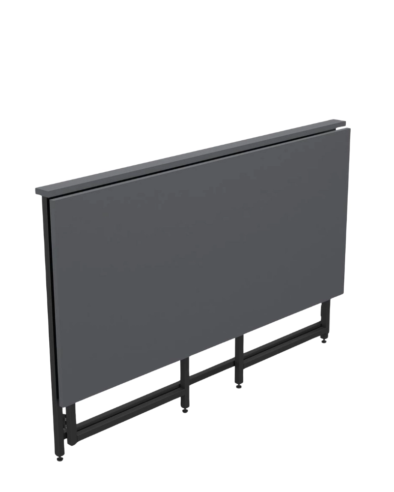 Раскладной стол FOLD может быть использован на кухне, в домашнем обиходе или как рабочее место школьника. Простой процесс трансформации сэкономит вам время и пространство. Столешница из ДСП 1200*600мм, ножки из металлического каркаса с регулировкой по высоте.